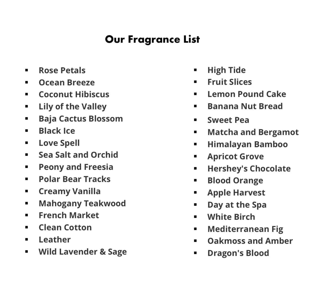 If you donโt see a color / scent you like in the drop down menu, please see pictures for our color palette and fragrance list.